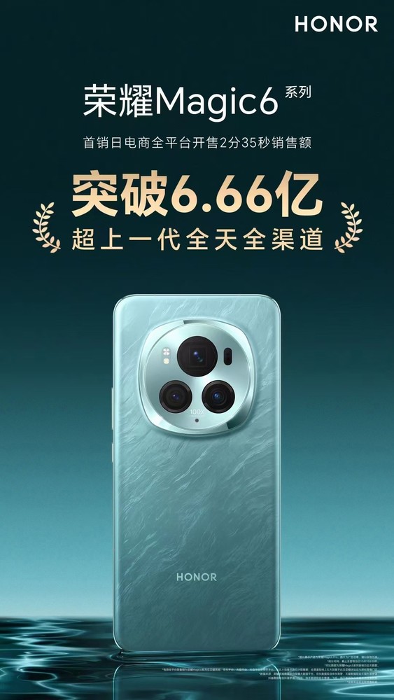 榮耀Magic6系列全平台銷售額破6.6億 遠(yuǎn)超上代機型