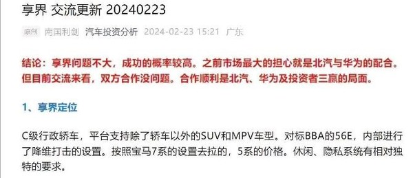 曝華爲和(hé)北(běi)汽合作“享界”首款車降維打擊 7系配置5系價