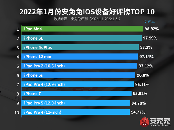 誰主沉浮 安兔兔公布2022年1月(yuè)iOS設備性能榜/好評榜