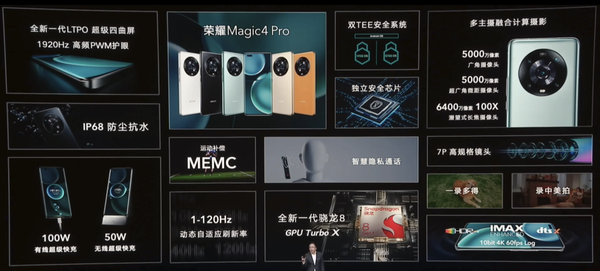 性能方面,榮耀Magic4系列搭載高(gāo)通(tōng)全新一代骁龍8移動平台,在OSTurboX、GPUTurboX、LINKTurboX的(de)加持下(xià),讓手機動力澎湃,影(yǐng)音(yīn)娛樂(yuè)、遊戲性能體驗俱佳。此外,新機采用(yòng)第三代石墨烯技術——超導六方晶石墨烯,配合上全新設計的(de)VC液冷(lěng)系統,輕松解決手機發熱(rè)問題。