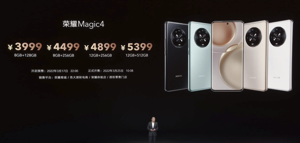 最後,在大(dà)家比較關心的(de)價格方面,榮耀Magic48GB+128GB版售3999元,8GB+256GB版售4499元,12GB+256GB版4899售元,12GB+512GB版售5399元;榮耀Magic4Pro方面,8GB+256GB版售5499元,12GB+256GB版售5899元,12GB+512GB版售6499元;Magic4至臻版12GB+512GB版售7999元。