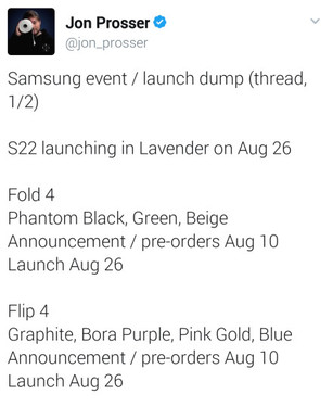 日前,海外博主JonProsser洩露了(le)三星新品發布會的(de)時(shí)間和(hé)産品相關信息。雖然他(tā)被稱爲是“蘋果爆料大(dà)神”,但其他(tā)爆料信息一向很準确,因此可(kě)信度極高(gāo)。