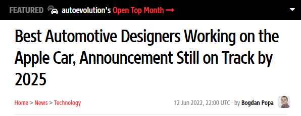 外媒:蘋果汽車進展不錯 聘請行業頂級設計師打造