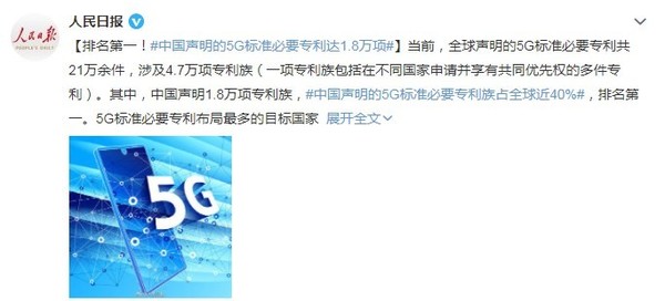雙雙登頂!中國5G标準必要專利1.8萬項 華爲占6500餘項