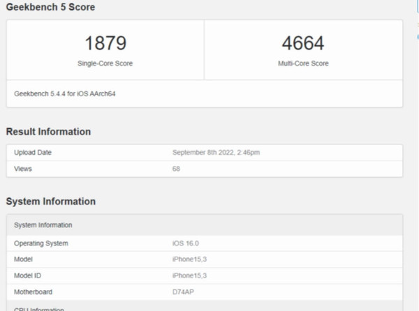 地表最強?蘋果A16芯片現身跑分(fēn)平台 成績有點尴尬