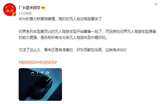 華爲要“搞事情”?曝其和(hé)賽力斯将帶來(lái)高(gāo)階無人(rén)駕駛車型