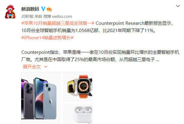 iPhone 14系列助攻 蘋果10月(yuè)銷量超越三星成全球第一