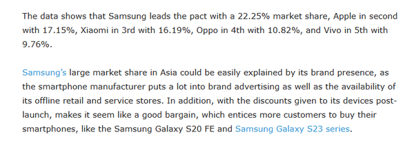雖然蘋果旗下(xià)的(de)手機産品在價格上一般都較爲昂貴,但是憑借著(zhe)其品牌的(de)吸引力和(hé)智能手機本身完善的(de)使用(yòng)體驗,蘋果手機依然是全球範圍内熱(rè)度最高(gāo),也(yě)是最暢銷的(de)智能手機之一。當前,全球智能手機市場(chǎng)中,份額排名前三的(de)廠商分(fēn)别爲三星、蘋果和(hé)小米,但是這(zhè)一排名也(yě)會随著(zhe)具體的(de)時(shí)間段和(hé)地區(qū)而産生變動。近日,手機中國注意到,蘋果在亞洲市場(chǎng)上的(de)份額似乎超越了(le)小米。