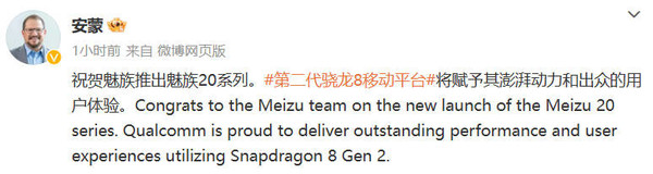 高(gāo)通(tōng)總裁祝賀魅族20系列震撼發布 無界性能讓人(rén)驚喜!
