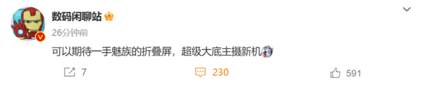 魅族折疊屏最新爆料:配超大(dà)底主攝 有望年内上市