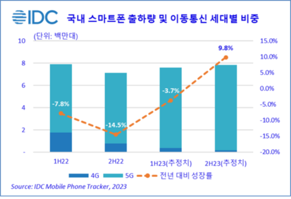 IDC數據顯示,去年下(xià)半年韓國智能手機市場(chǎng)的(de)出貨量約713萬部,較去年同期相比減少了(le)14.5%。分(fēn)析師認爲,這(zhè)是由于高(gāo)利率和(hé)通(tōng)貨膨脹引發的(de)經濟衰退帶來(lái)的(de)影(yǐng)響,抑制了(le)整體的(de)消費情緒,從而導緻市場(chǎng)需求全面減少。