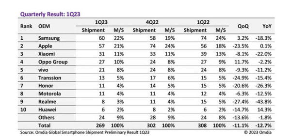 根據相關機構的(de)調研數據,當前,三星、蘋果、小米、OPPO、vivo、傳音(yīn)、榮耀、摩托羅拉、realme真我和(hé)華爲是目前全球市場(chǎng)份額最大(dà)的(de)十家智能手機廠商,它們分(fēn)别占據了(le)22%、21%、11%、10%、8%、5%、4%、4%、3%和(hé)2%的(de)市場(chǎng)份額。我們可(kě)以注意到,其中絕大(dà)部分(fēn)都是中國手機廠商。即便将摩托羅拉(被聯想收購(gòu))和(hé)華爲(鴻蒙系統)剔除在外,原生的(de)國産安卓手機廠商也(yě)已總計占據了(le)全球超過40%的(de)市場(chǎng),是蘋果的(de)兩倍左右。