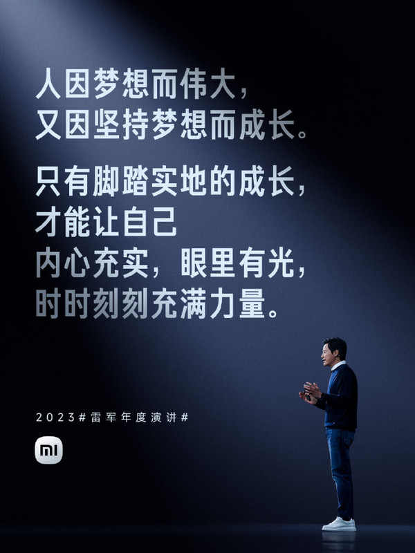 在年度演講和(hé)發布會之前,雷軍在接受采訪時(shí)表示,自己不建議(yì)給年輕人(rén)太多(duō)的(de)建議(yì),相信他(tā)們就好,不要規定讓年輕人(rén)隻能幹什(shén)麽,或者隻能怎麽幹,每個(gè)人(rén)的(de)人(rén)生都有無限的(de)可(kě)能。不是所有人(rén)都是雷軍,但每個(gè)人(rén)都應該有夢想,正如雷軍所說的(de):人(rén)因夢想而偉大(dà),又因堅持夢想而成長(cháng)。