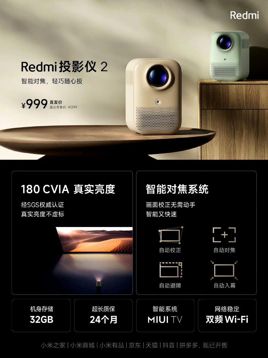 9月(yuè)22日,小米智能生态官方宣布全新的(de)Redmi投影(yǐng)儀2系列現已開售!首發到手999元起。