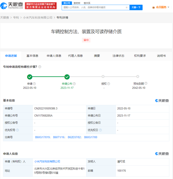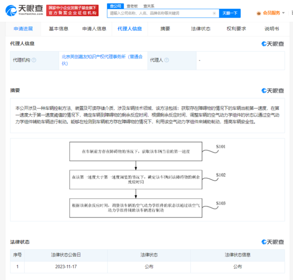 11月(yuè)17日,小米汽車科技有限公司申請的(de)“車輛控制方法、裝置及可(kě)讀存儲介質”專利公布。天眼查App顯示,該專利涉及車輛技術領域,主要研究在存在障礙物(wù)的(de)情況下(xià),如何利用(yòng)空氣動力學組件輔助車輛進行制動,以提高(gāo)車輛安全性。
