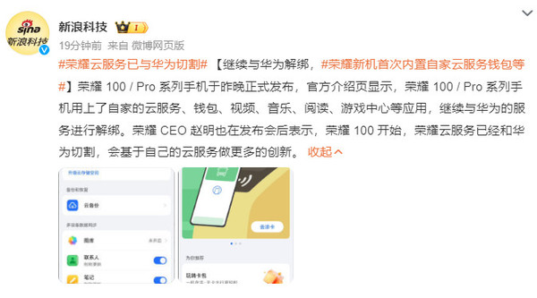 榮耀CEO趙明(míng)也(yě)在發布會後表示,榮耀100開始,榮耀雲服務已經和(hé)華爲切割,會基于自己的(de)雲服務做(zuò)更多(duō)的(de)創新。
